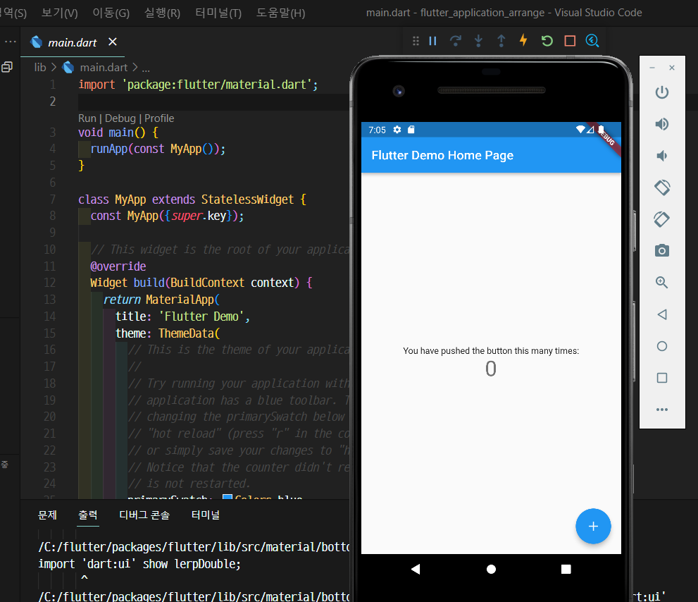 결국은 vscode에서 android studio를 기반으로 안드로이드 스튜디오에 있는 애뮬레이터로 디버깅 하는 형태인 것이다.